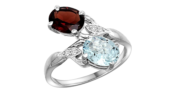 Amazon Com 10k White Gold Garnet Aquamarine 2 Stone Mother S Ring Oval 8x6mm Diamond Accents 3 4 Inch Wide Sizes 5 10 Clothing Shoes Jewelry